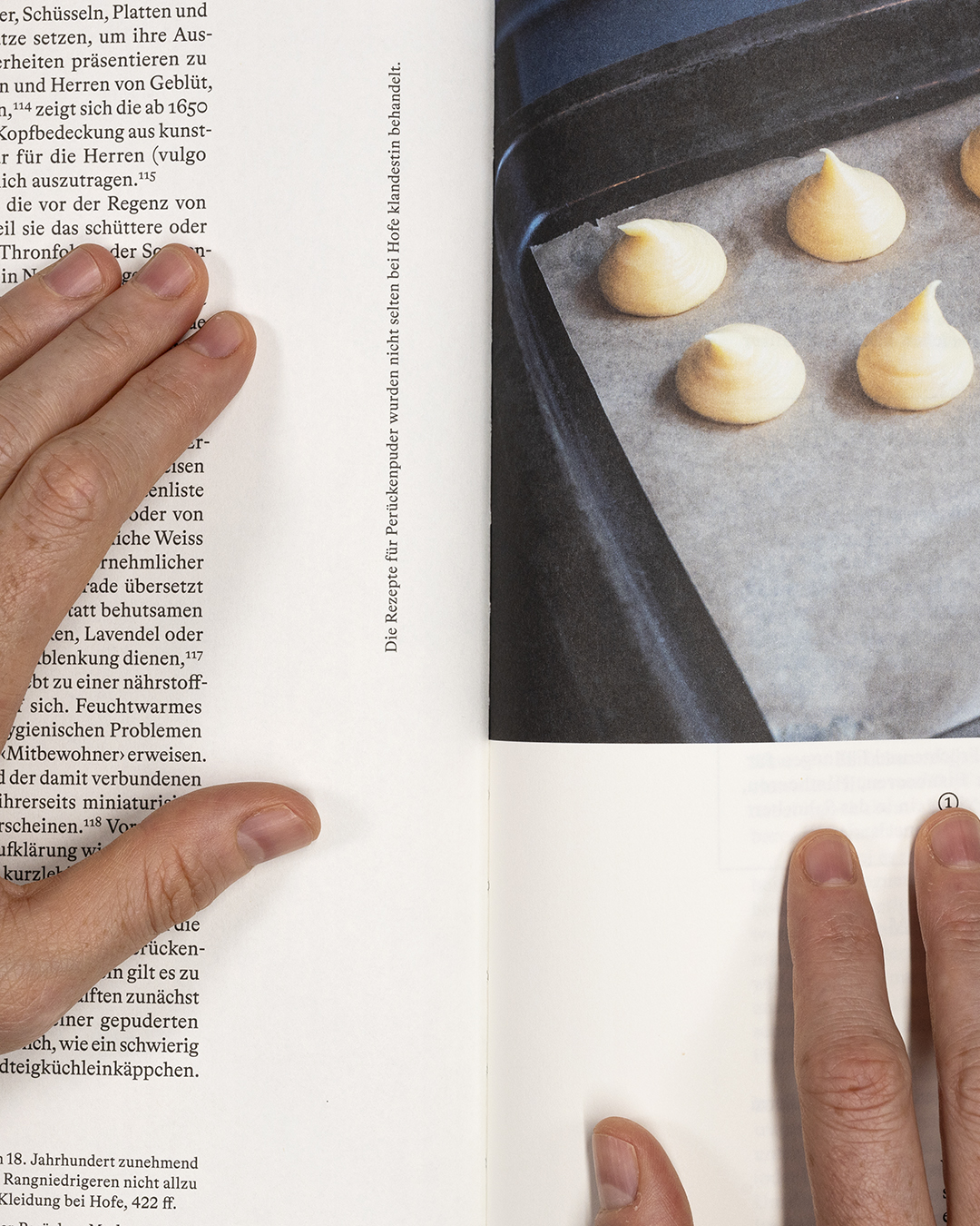 Die naturgemäßen Brüche, die ein zeitlicher Brückenschlag mit sich bringt, wurden dabei feinsinnig verwoben: Das typografische Cover mutet mit seiner Serifenschrift historisch an, wird jedoch teilweise von einer aufkaschierten Fotokarte verdeckt. Den Charakter eines Schau-Essens – eine Verheißung von Aromen, Texturen und Genuss – übersetzt das Fotokonzept mit klaren und farblich bestens abgestimmten Sujets.